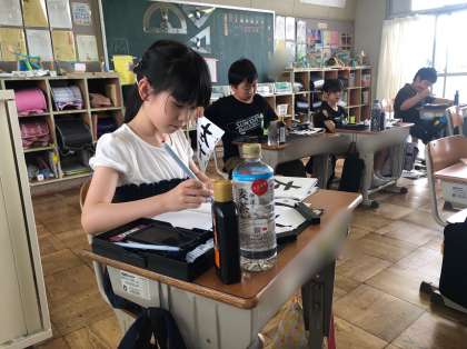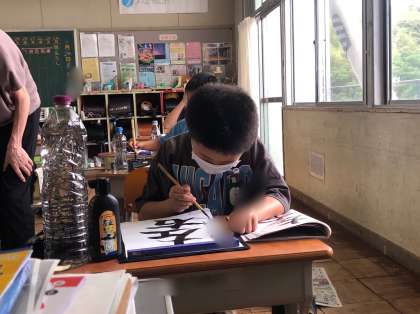 4年赤組の書写です。筆順と字形を意識して、「左右」の字を書いています。間違えやすい漢字です。しっかりと筆順を覚えたかな。