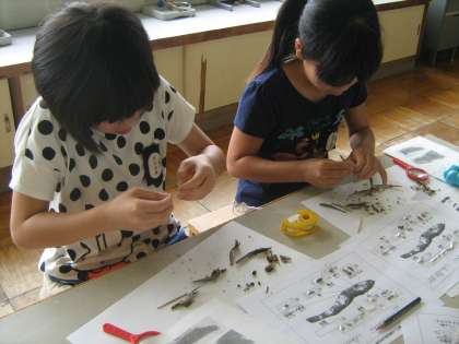 6月16日火曜日,理科の学習「人や他の動物の体」で,カタクチイワシ(にぼし)の解剖をしました。水晶体,脳,背骨,筋肉,心臓などに分け,体のつくりを学習することができました。きれいに取れた背骨や水晶体を見て,子どもたちは感動していました。