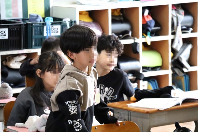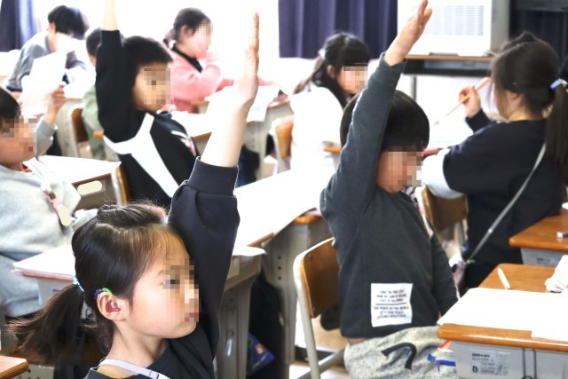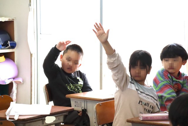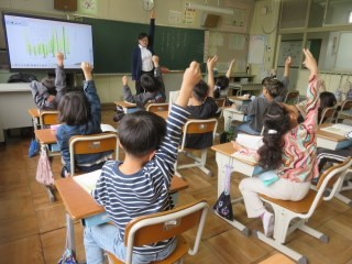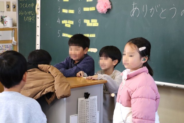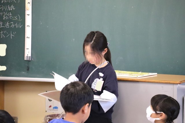 2年赤組は給食のアンケートに取り組みます。