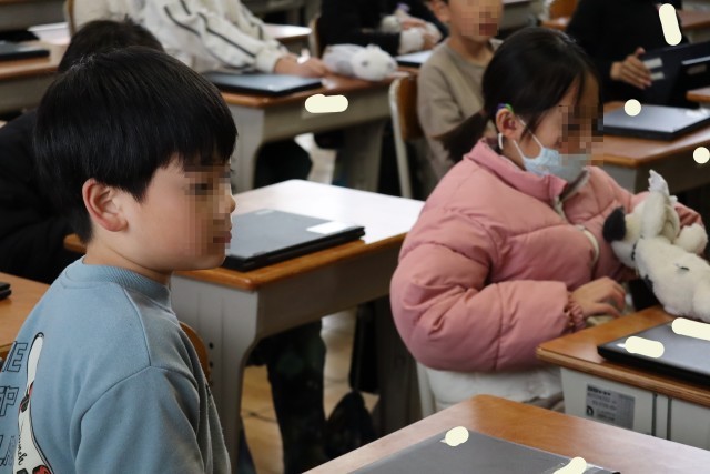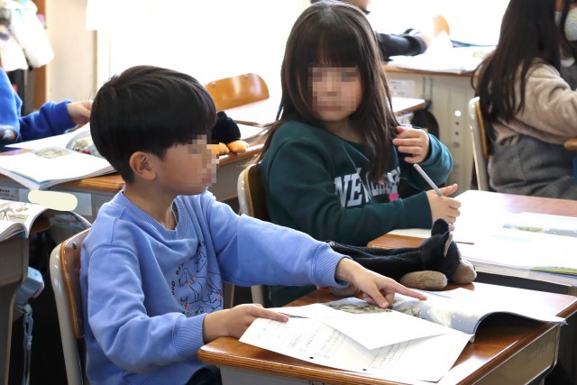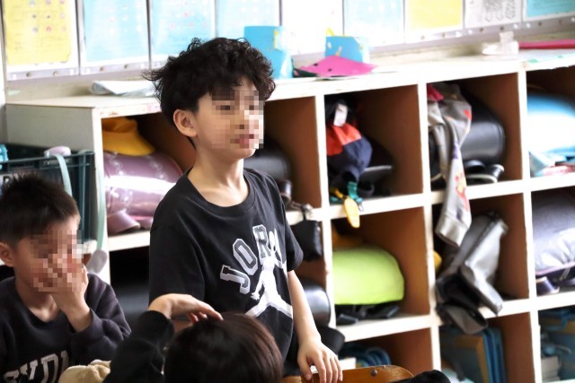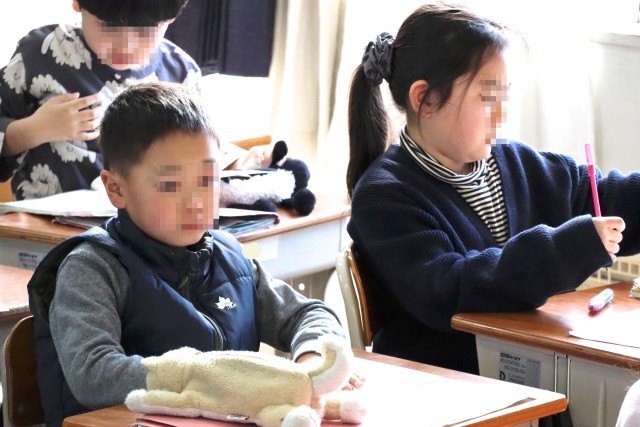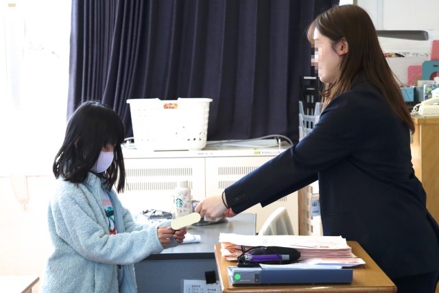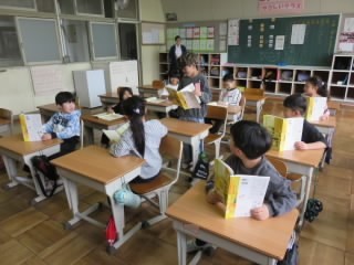 2年赤組は学活です。通知表を受け取ります。