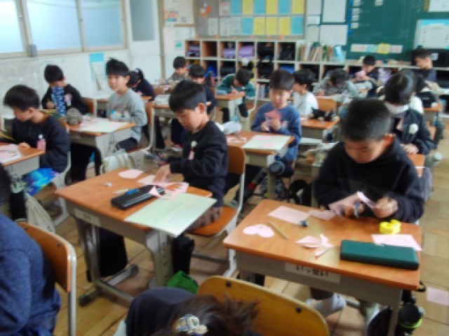 2年赤組は道徳の時間です。心について考えます。