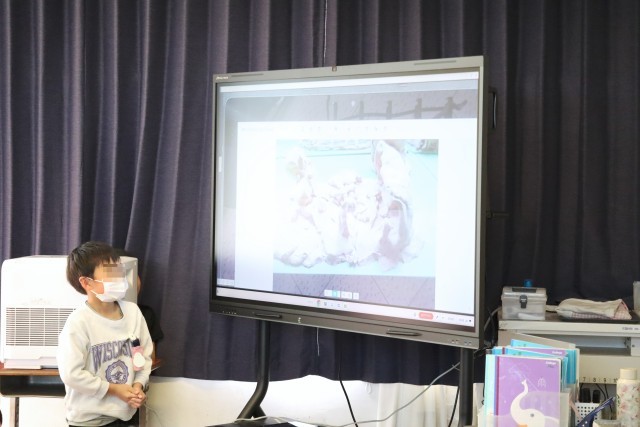 2年赤組は生活の学習です。自分の成長について発表します。