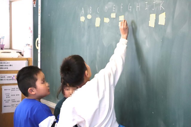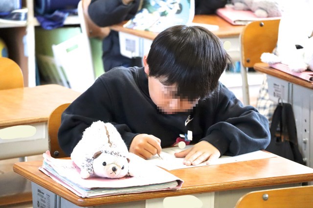 2年赤組は国語の学習です。楽しかったよ2年生で発表する文の組み立てを考えます。
