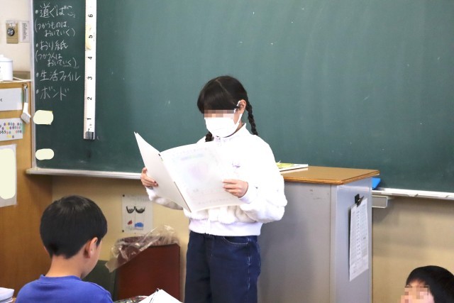 物語「ふきのとう」を音読します。場面の様子や登場人物の心の動きを考えながら、声の大きさや読み方を工夫して音読します。
