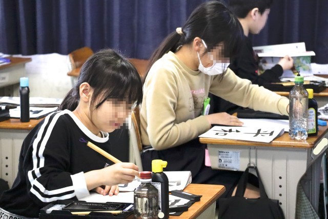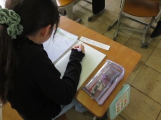 4年赤組は書写の学習です。1年間のまとめをします。