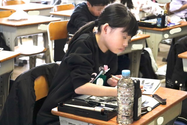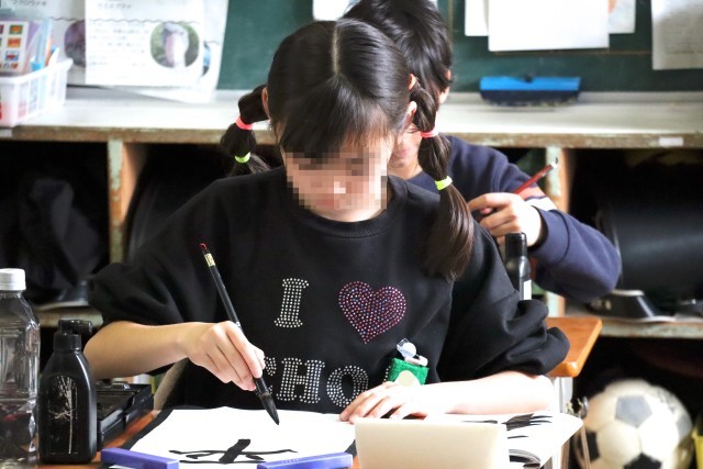4年赤組は書写の学習です。平和と書きます。