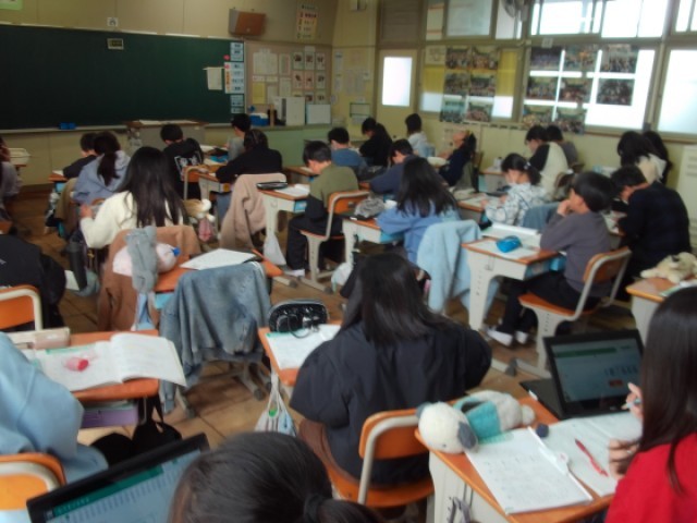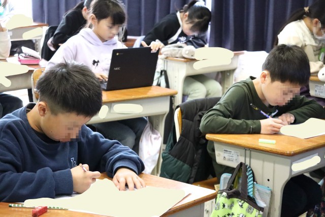 4年赤組は社会の学習です。2種類のテストをします。