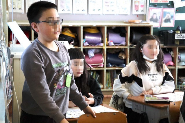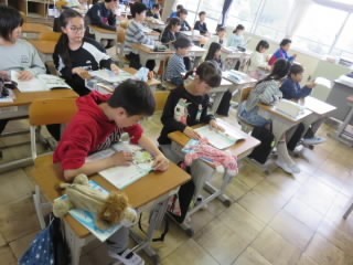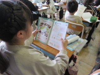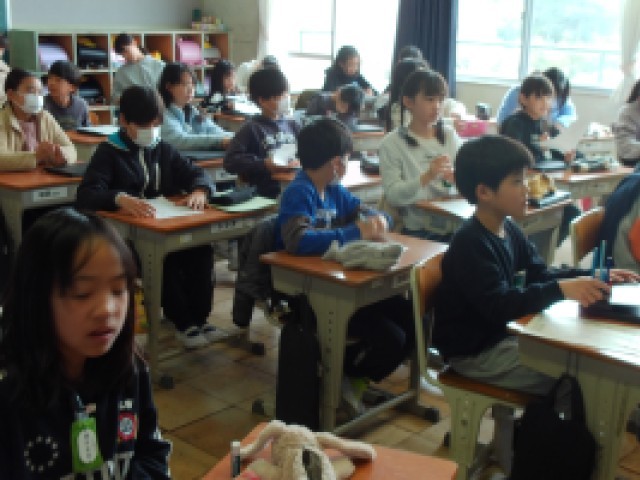 4年赤組は学活です。春休みのくらしについての話を聞きます。