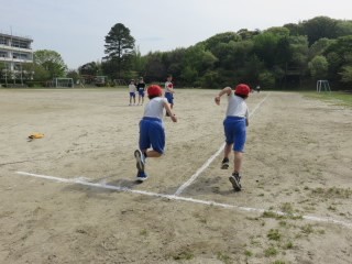 短距離走に取り組みます。スタートダッシュの練習をした後、50m走のタイムを計測します。