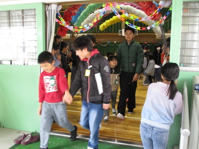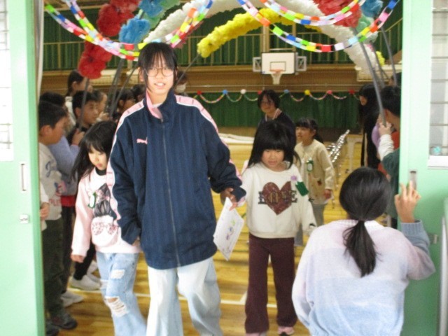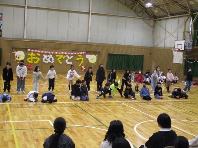1年生から6年生への手紙をプレゼントしたあと、一学年ずつ6年生の前で出し物を披露しました。