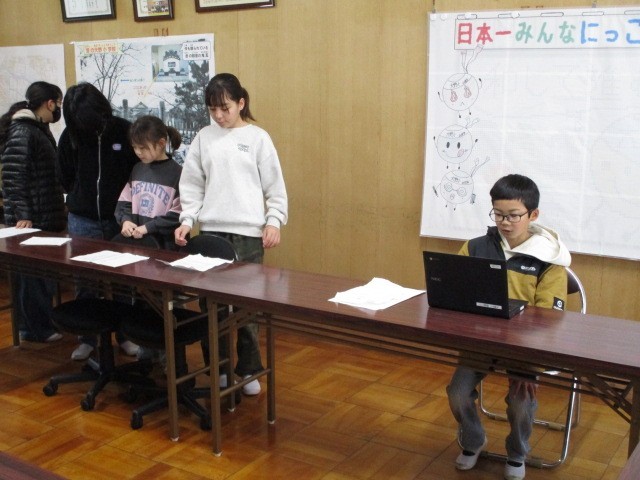 今日のスマイルタイムでは、来週の学校給食週間に向けて給食委員会からの連絡がありました。