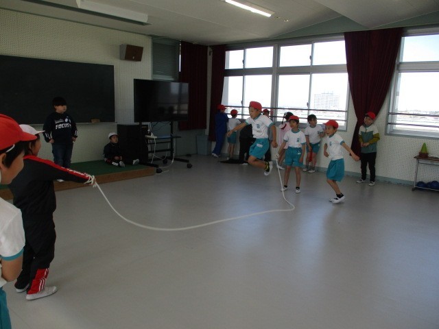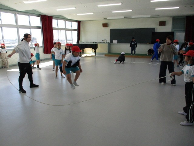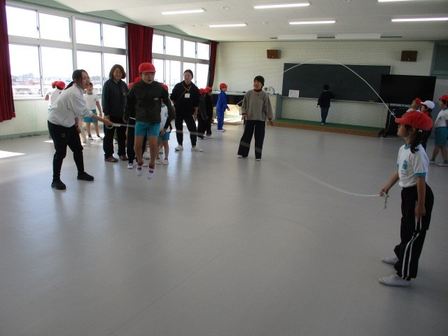 苦手な子も、先生がタイミングを合わせて縄を回してくれたので跳ぶことができるようになりました。