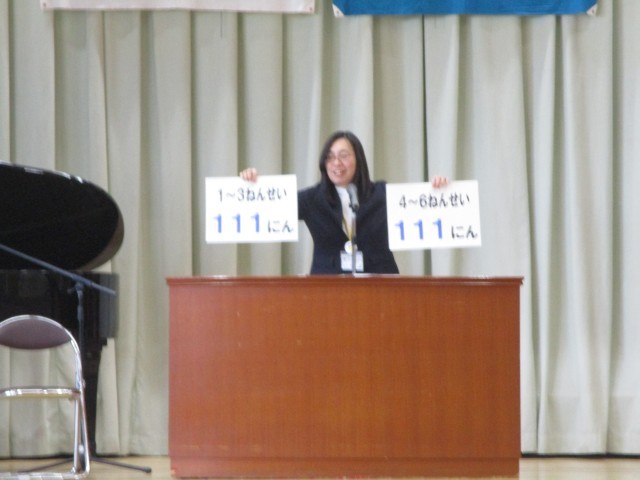今年の大野小は1~3年生が111人、4~6年生も111人です。
