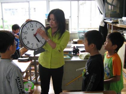 この日の内容は、数字で0〜100までの言い方を練習しました。その後、果物の数当てと電話番号の言い方、そして時計を使って時刻の言い方の練習をしました。