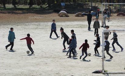 2限目の後の大放課になると、運動場は子どもたちの元気のよい笑い声や歓声でにぎやかになります。