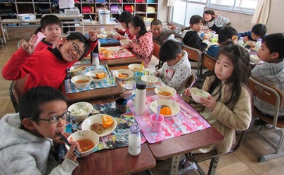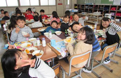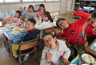 2年2組の最後の給食の様子です。 みんな楽しく会食ができました。