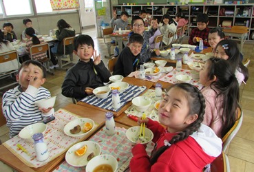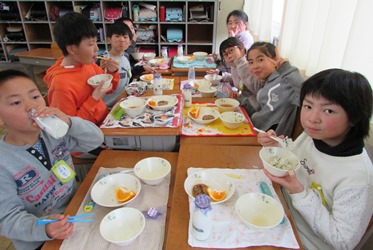 3年1組の最後の給食の様子です。 みんな楽しく会食ができました。
