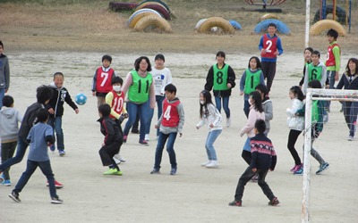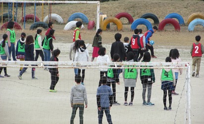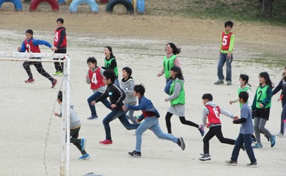 5年1組の子どもたちがお楽しみ会でサッカーをしていました。