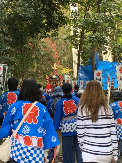 とても穏やかな日となりました。子ども神輿や大野梅栄車おはやしがあり、子どもたちも大活躍でした。校長先生も神輿をかついで「わっしょい、わっしょい!」
