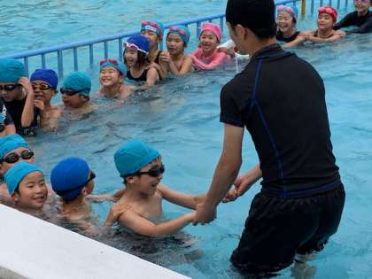 今年度初めてのプールは、2年生と6年生。冷たいけど、気持ちいい!