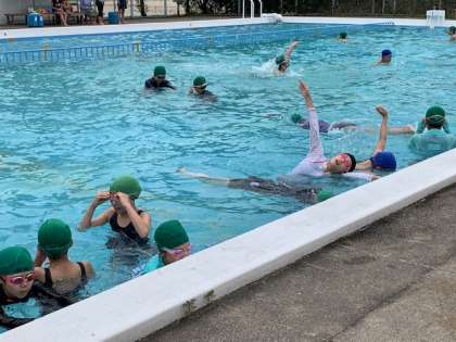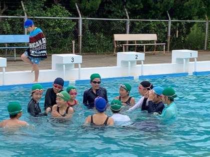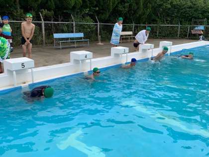 6年生は初日からクロールの練習。最後はみんなで追いかけっこ。