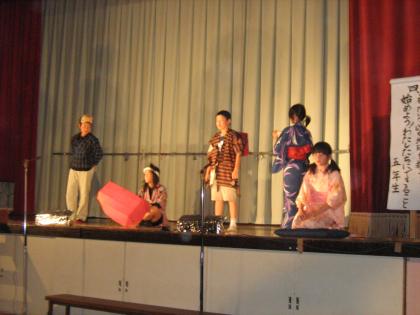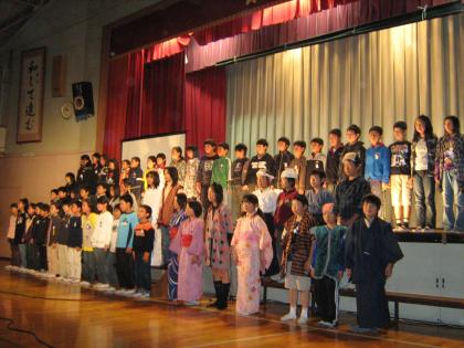 「『もったいない』が地球を救う〜始めよう!わたしたちにできること」と題して、環境をテーマにした発表を行いました。ゴミが増えている現状やゴミを減らす取り組みについてのプレゼンテーションをしたり、江戸時代のエコ生活について劇で紹介したりしました。中でも詩の群読は、「もったいない」というメッセージが観客の方にも伝わっていたと思います。準備・練習の段階からそれぞれの子が自分の役割をしっかりと意識して取り組め、その成果を本番で存分に発揮することができました。