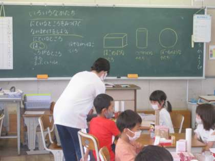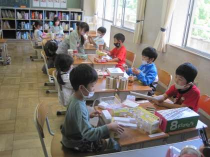 6月7日(火) 1年 図工 公開日 2022/06/07 更新日 2022/06/07 1年生の部屋 1年生は、図工で「いろいろなかたち」の単元でした。隣の人とペアになり、それぞれがもってきた箱や容器を見比べて、「丸い形」「四角い形」「筒の形」などに分けていました。うまくできたかな? いいね(0)
