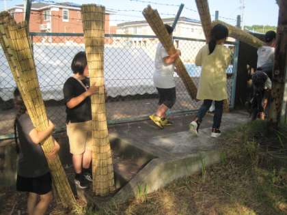 6月8日(水) プール整備 公開日 2022/06/08 更新日 2022/06/08 大野小の部屋 児童の皆さんが下校してから、先生達でよしずをはったり、テントを立てたりしました。最後のよしずを運ぶのを、遊びに来ていた3年生の子達が手伝ってくれました。ありがとうございました。 いいね(0)