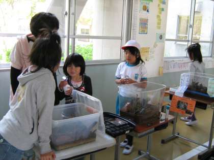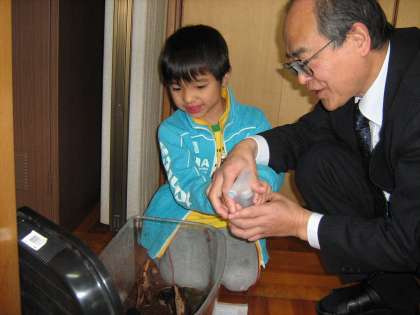 ひとりで育てるよりもみんなで育てた方が楽しいので、「スズムシ友の会」を呼びかけました。110人以上の人が入ってくれました。1年から6年までみんなで世話をしていて楽しいです。