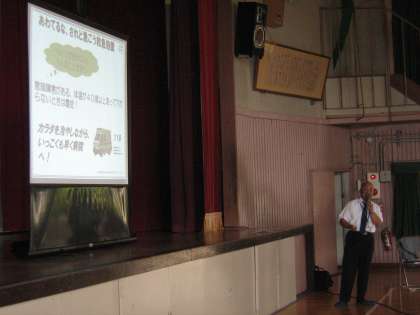6月17日(木)に製薬会社の方を講師に迎えて学校保健委員会を開催しました。テーマは『元気に過ごせる水分補給』です。5・6年児童、職員、PTA委員が、熱中症の予防についてお話を聴きました。