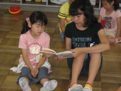 朝読書の時間には、「ふれあい読書」が行われ、ペアのお兄さん・お姉さんに本を読んでもらいました。