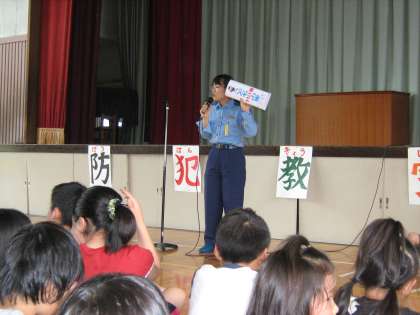 6/29(火)に防犯教室を開催しました。 防犯教室では、常滑警察署員の方から「不審者に対する対応の仕方」&「日ごろから注意すること」について教えていただきました。