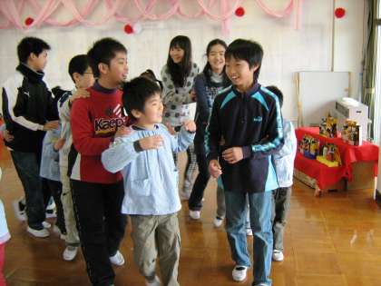 2月25日(金)に青海、大野、三和西保育園に行ってきました。園児たちと一緒に、じゃんけん列車や筒でっぽうで遊んだり、読み聞かせをしたりと楽しい時間を過ごすことができました。