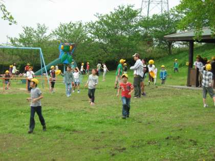 5月1日、青海農村公園へ遠足に行きました。ペア学年の5年生といっしょです。5年生が考え、準備してくれたゲームや遊びをして、汗びっしょりになりました。天気は曇りで風が少し強かったですが、時々太陽がのぞき、絶好の遠足日和となりました。