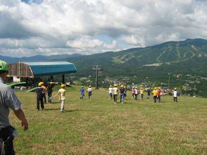 8月6・7・8日,2泊3日で5年生が,ひるがの高原キャンプ場へ行ってきました。2日目は,スキー場で登山をしました。山の上から見る景色は,最高でした。ゲームをしたり,未成年の主張をしたりした後,リフトで下山しました。天候にも恵まれよい思い出ができました。