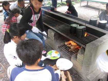 その後に,野外教育センターに到着し,飯ごう炊さんを行いました。どの班も上手に火を起こすことができましたが,水の量を間違えてしまう班もありました。しかし,自分たちで作ったカレーライスをおいしそうに食べていました。