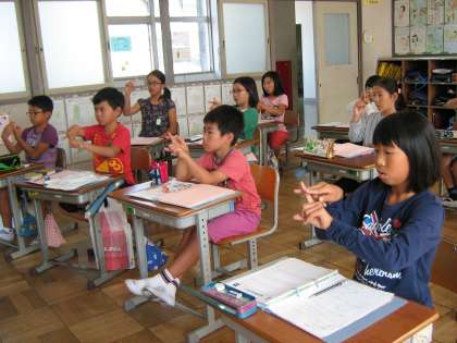 体験できる教室は、点字、手話、車いすの3つです。