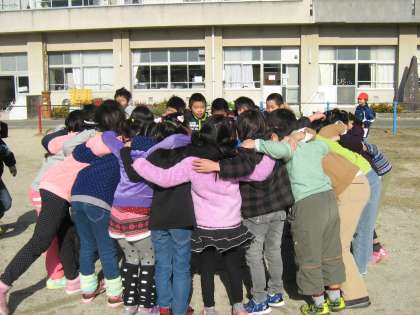 12月9日(火),雨天で延期になっていた大縄大会をようやく実施することができました。今年は,天候に恵まれず,例年に比べて練習できる日が少なかったのですが,どのクラスも,精一杯頑張りました。ペア学年の応援もあり,全クラス,目標回数を超えることができました。中には,本番で,最高記録を出したクラスもありました。始まる前に円陣を組んだり,終わった後にペア学年で記念写真を撮ったりする姿も見られました。クラスやペア学年の絆が,また一段と強くなりました。