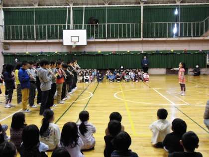 3年生は、6年生へ感謝の気もちをこめて、リコーダーと歌の発表をしました。