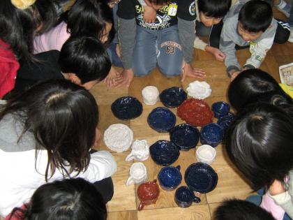 10月の社会見学で作ったやきものが、学校に届けられました。出来上がった自分たちの作品を見たときには、一斉に歓声があがりました。また、個性豊かな友達の作品も子どもたちは楽しそうに見ていました。これでまた一つ、いい思い出の物が増えたことと思います。