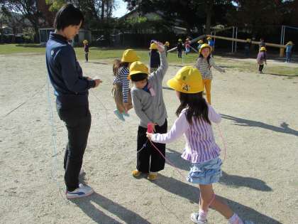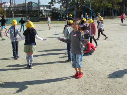 できた種目や回数を「なわとびがんばりカード」に記入しながら、練習しています。