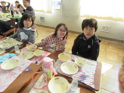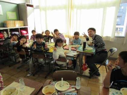 11/27 3年 給食風景2 公開日 2017/11/27 更新日 2017/11/27 3年生の部屋 3年1組の給食風景です。カメラマンの到着が遅れたので、ほとんどの子が食べ終わっていました。 いいね(0)