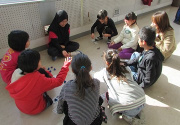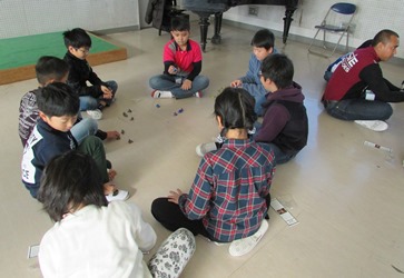 12/9 4年 マレーシア伝統遊び2 公開日 2017/12/09 更新日 2017/12/09 4年生の部屋 正4面体の形をしたカラフルなブロックを、だんだん数を多くしていき、それをお手玉みたいにかき集めるような遊びでした。 いいね(0)