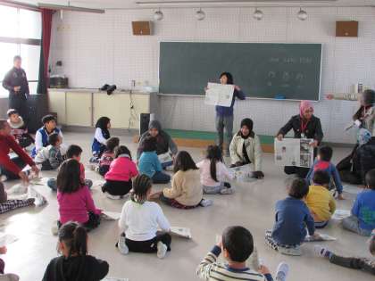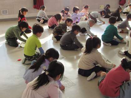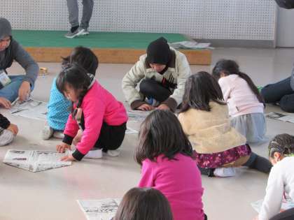 1年生がセクション7小学校の皆さんと交流授業を行いました。新聞紙で紙鉄砲を作って遊びました。