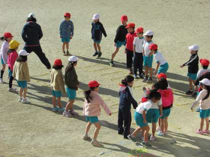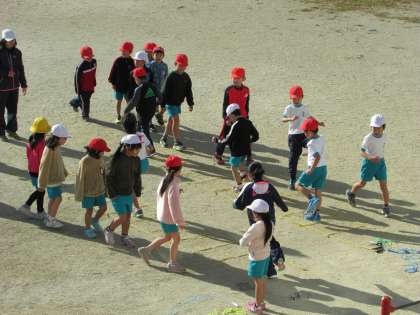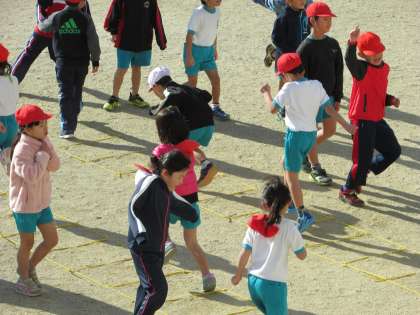 ラダーの1マス、1マスを両足や片足けんけんなどで跳んだり、またいだり、いろいろな跳び方で遊びながら、体力づくりや準備運動ができます。