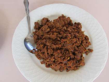 すてきなマレーシア料理ができあがりました。写真の上から「ランダン」、「ナシ・ゴレン」、「ナシ・ラマ」です。とてもスパイシーな味でした。