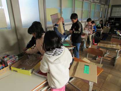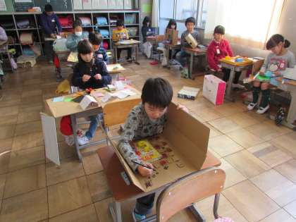 12/20 2年 図工 わくわくすごろく2 公開日 2017/12/20 更新日 2017/12/20 2年生の部屋 学習発表会で2年生が演じた「かさじぞう」を題材にして、作品を作った児童もいるようです。 いいね(0)