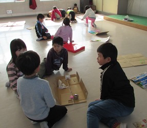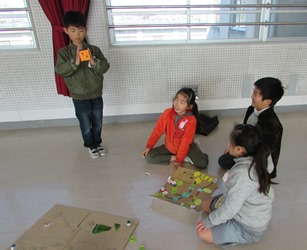 2年1組のお楽しみ会の様子です。図工の授業で作った「わくわくすごろく」を使って、みんなで遊びました。