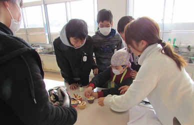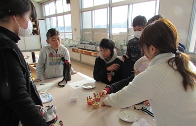 12/26 6年 お楽しみ会2 公開日 2017/12/26 更新日 2017/12/26 6年生の部屋 細長い棒状のビスケットや丸いマーブルチョコレートを使ってトナカイの顔を作りました。角や鼻など、トナカイの顔がかわいらしく上手にできていました。 いいね(0)