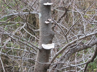 本校のサクラの木にサルノコシカケがいくつかできていました。猿が座るのは無理ですが、小鳥が休憩するにはちょうどよい大きさかもしれません。寒さで丸坊主になったサクラの木にワンポイントのように存在感を示しています。